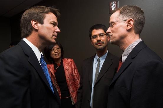 (Edwards meets with plaintiffs in the California same-sex marriage case, Stuart Gaffney and John Lewis. Photo courtesy of Marriage Equality.)