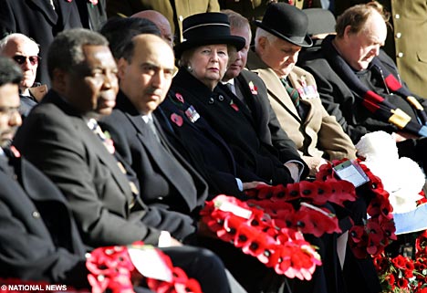 Memorial: Baroness Thatcher at a Remembrance service in London yesterday