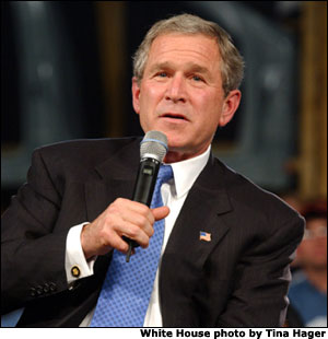 President Bush at forum yesterday in Greer, S.C. (White House photo) |