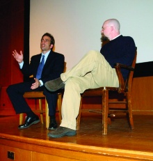 (Expand Photo) Bobby Schindler (l) speaks about his family's battle to save his sister. Visiting James Madison fellow Chris Tollefson also spoke. | A week after a Florida judge ruled that Terri Schiavo's feeding tube could be removed, her brother said that allowing her to die would put the United States on the path to Holocaust-style cruelties.