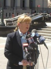 Rep. Carolyn McCarthy, D-N.Y., announcing a provision to allow doctors to ban people from owning guns
